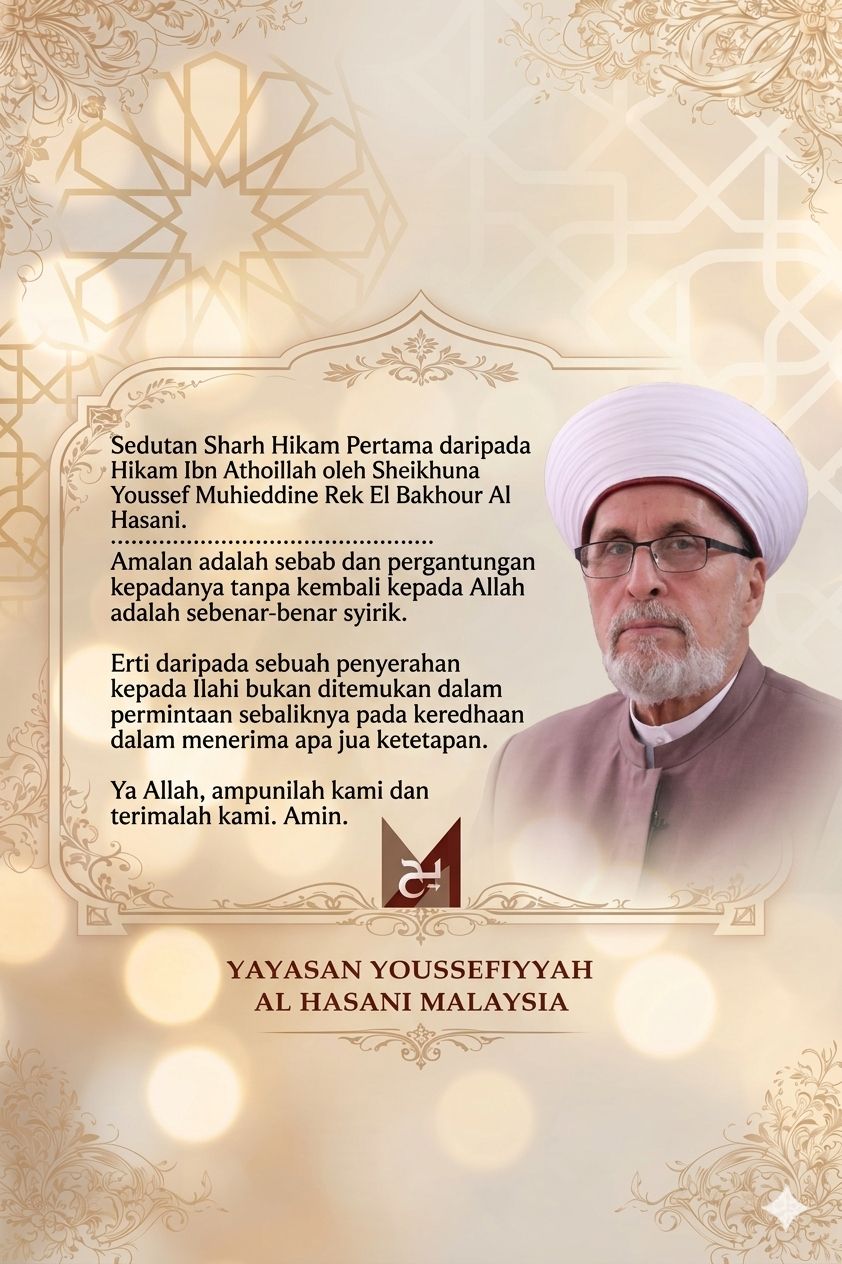 Sedutan Sharh Hikam Pertama daripada Hikam Ibn Athoillah oleh Sheikhuna Youssef Muhieddine Rek El Bakhour Al Hasani