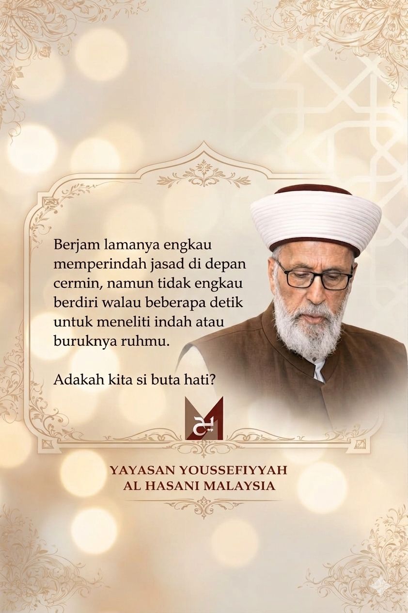 Sekiranya engkau mampu berdiri berjam-jam di hadapan cermin kerana sibuk memperindahkan fizikmu namun tidak pula meneliti keadaan ruhmu, maka bolehkah dikatakan engkau memiliki mata pancaindera atau mata hati?